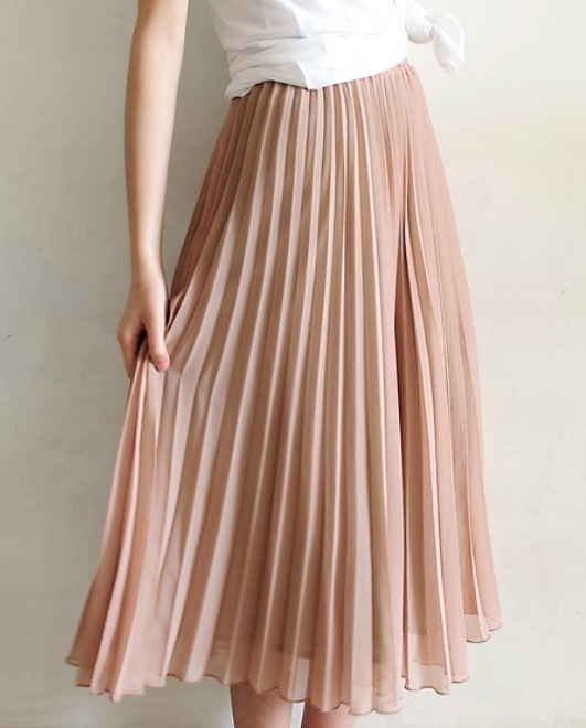 アコーディオンプリーツスカートとは楽器のアコーディオンに見られる蛇腹の様な、細く均一なプリーツを入れた、全円裁ちのスカート。