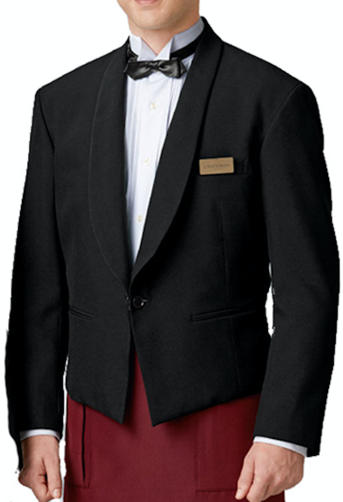 腰までの長さでヘムを水平にカットした、短い前あきの上着で、幅の広い大きなラペルがつき、前の釦をかけずに着るならわしがある。