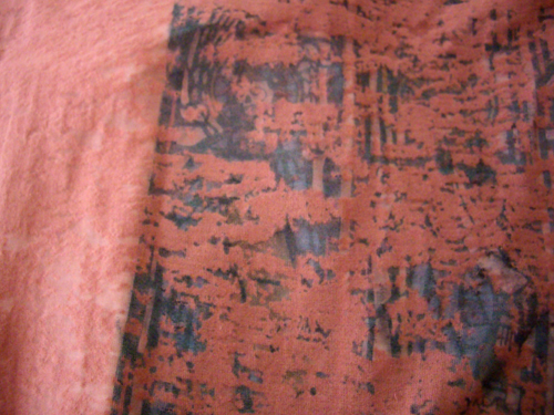捺染した部分には侵されるほうの繊維が分解して抜け落ち、侵されない部分だけが残って透けて見える。透かした部分に着色を行う着色オパール加工もある。