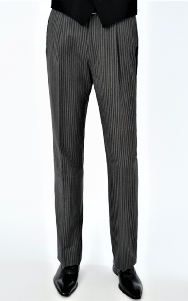 ストライプドトラウザーズとは、モーニングコートやディレクタースーツなど男性の昼の礼装に合わせる黒とグレーの縦縞がはいったパンツのこと。