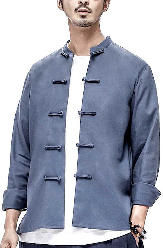 チャイニーズトップとは中国の伝統的な上衣で、立ち衿(マオカラー)に広い袖、ループ留めの釦が特徴。裾の両サイドにはスリットがある。