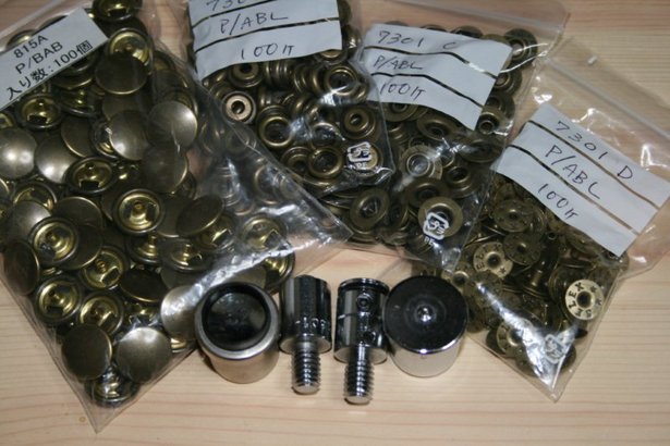 その他の打ち付け型の附属ではアイレット、リベット、タック釦等がある。