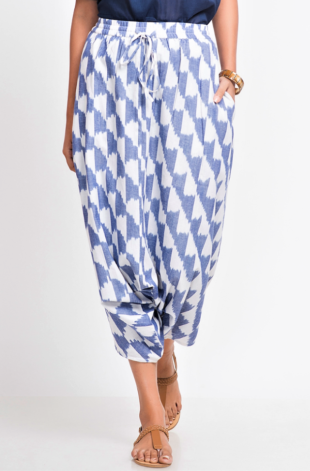 ハーレムスカートとはふくらませた裾をギャザーで縮め、裾口でくくったように内側に入れ込んでドレープを出した、ゆったりとしたパンツ風スカートを指す。ハーレムは「回教徒の女性部屋、あるいはそこにいる女性たち」の意。