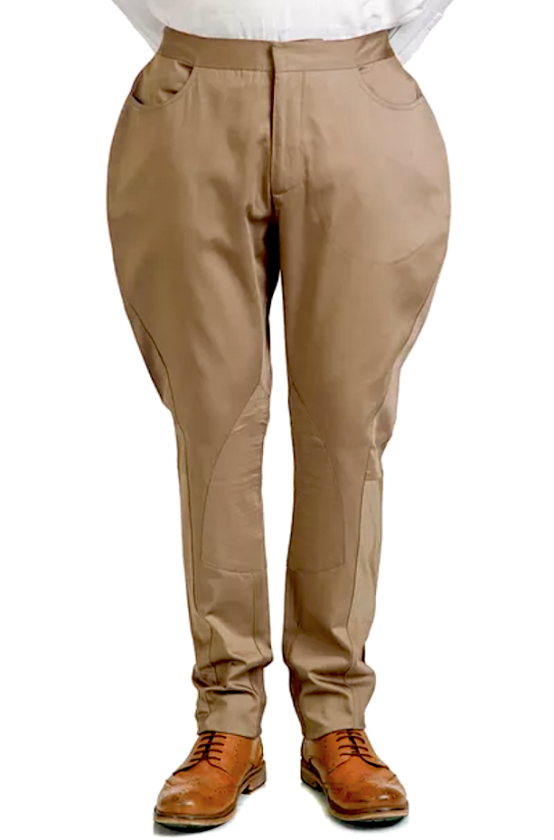 パンタロンショセットとはゆったりとしたパンツの上にハイソックスをはいたように見えるデザインのパンツのことで、膝から下が脚にフィットしているのが特徴。