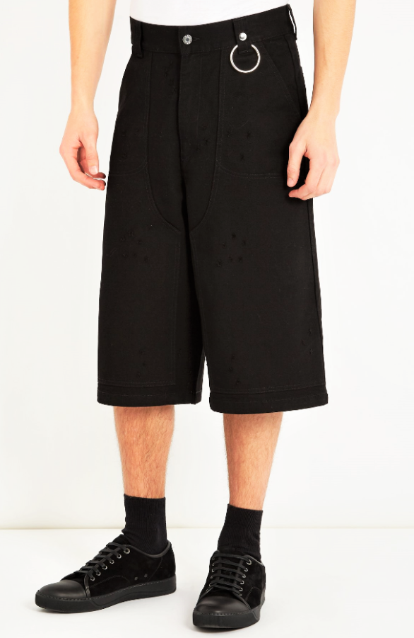 ボードショーツとは股上を深くして、ローウエスト(ヒップボーン)にはくように仕立てられたパンツ。ずり下げているように見える外観が特徴。全体に幅が広く、七分丈が多い。