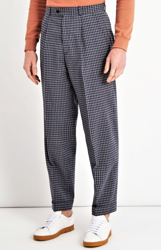 腰回りから太腿部にかけてゆったりし、裾にいくほど細くなるサブリナパンツや、カプリパンツと同種。ペッグトップトラウザーズ的なシルエット。