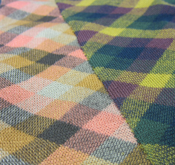 ミラニーズとはミラニーズ編機で編まれる経編の一種で、左右斜めに走る柄(菱形)が特徴。編地の性質は経編と緯編の中間に近い。色糸を使って斜め格子を出す以外はあまり変化模様が出せず、用途は限定され、生産量も多くはない。スカート、ドレスなどに使用される。
