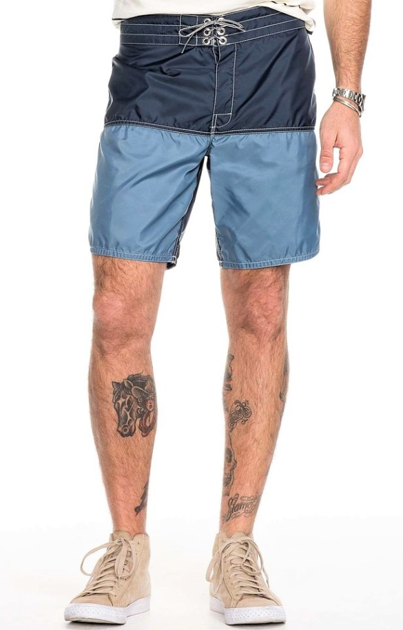 サーフトランクスとはサーフィン(波乗り)用のトランクス型パンツ。ゆったりとした分量で、丈は膝上が一般的。サーフパンツとも言う。