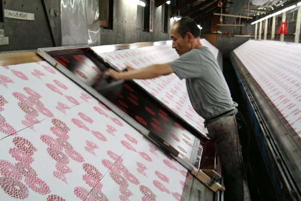 捺染とはプリントのこと。生地に着色剤の染料、あるいは顔料を用いて模様を染め出すこと。