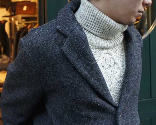 ボイルドウールとはウールを湯に通し縮絨(しゅくじゅう)したフェルト状の素材のこと。丈夫で風を通しにくく、独特の風合いをもつ。カジュアルジャケットなどに使われる。