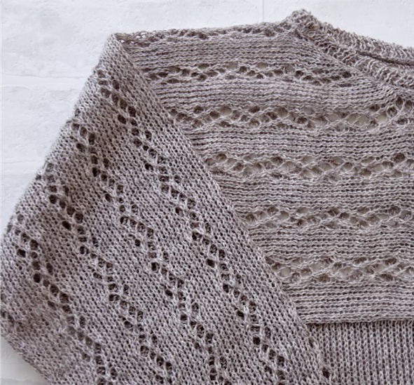 この方法によると、レース調の柄を出したり、編地全体を穴あき風にしたり、部分的に穴をあけたりすることができる。