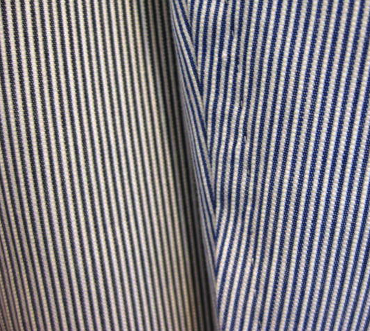 コードレーンとは縦方向に白い太目の畝(=コード)を出したもの。色糸の地経と晒し糸の緯糸で平織した地に、地経数本おきに、白い太目の畝経を2本から数本引きそろえて、織り込んで畝を出よます。やや硬く、さらりとした感触があり、白いコードは素朴な涼感にあふれています。