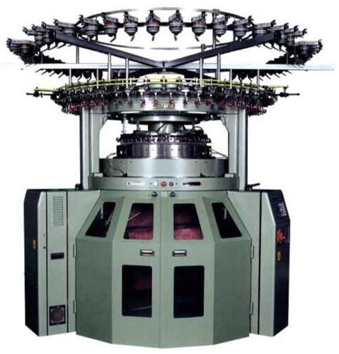 三段両面編機とは普通の丸編両面機は編針バットの位置が高、低2段で編成運動を行うが、これは高、中、低の3段にダイヤル針、シリン夕、一針が設備され、それぞれに作用する3組のカムによって1コースを編むようになっている。ダブルジャージーや肌着用のダブルスムースの編成に使われる。