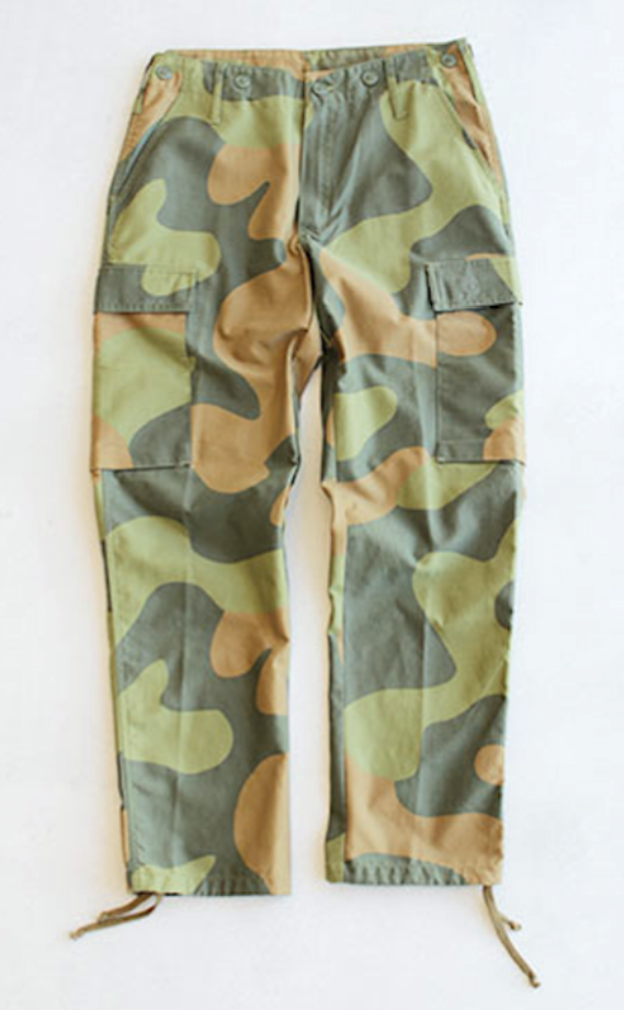 カモフラージュパンツとは軍服に見られる迷彩色や迷彩柄の生地を用いたパンツを言う。カモフラージュは「迷彩、擬装」の意。