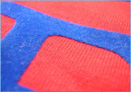 フロッキープリントとはフロッキーシート(起毛された生地)をプレスプリントする技法。