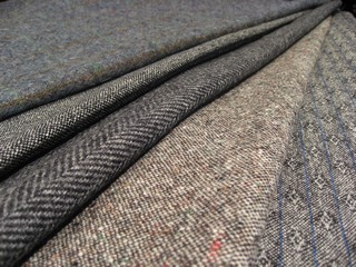 アイリッシュツイードとはアイルランド産紡毛のツイードの総称。白い経糸と黒、茶、グレーなどの暗い色の緯糸を用いたホームスパン調のツイード。