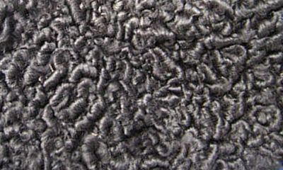 ドレッシーな高級毛皮で、帽子、トリミング、コート、マフに使う。これに似せてつくった織物、アストラカンクロスのこともさす。