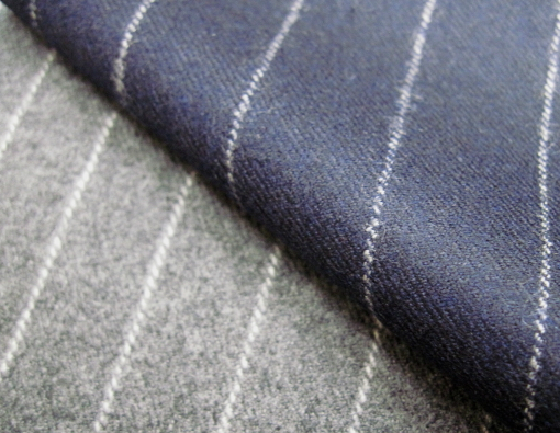 アンフィニッシュドウーステッドとは一般に梳毛素材に施される表面のけばを刈り取って滑らかにするクリアカット仕上げを行わず縮充をして綾目を目立たないようにしたもの。