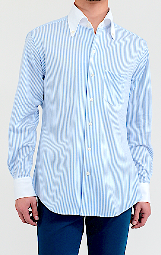 クレリックシャツとは牧師の服装に由来するもので、衿とカフスを身頃や袖と色違いにしたドレスシャツをいう。クレリックは「牧師、聖職者」の意。