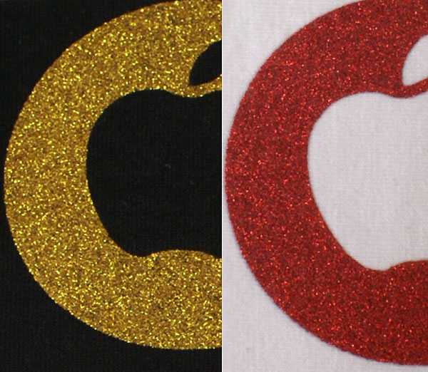 ラメインクが透明なため、ベースカラーが若干薄くなる。版は専用のラメ版を使用する。