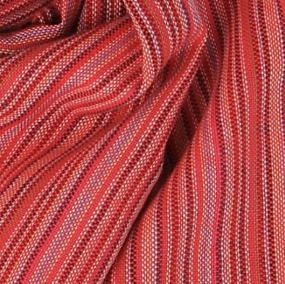経糸に同じ色の濃、中、淡の3色を使い、緯糸に経糸の色の中の淡色と同じ色の糸を使う。ただ経糸の3色の配列を濃、中、淡と順番に並べることと、それも各色1~2本ずつぐらい不規則に配列し、幅の不規則な濃、中、淡の細かいたて縞を表わすところにこの織物の特徴がある。