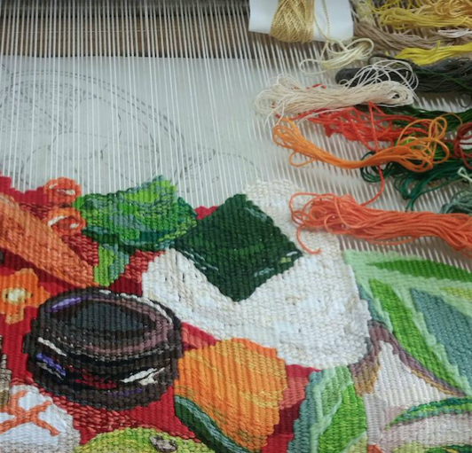タペストリーとは綴れ錦のこと。絹やウールなどを用いて絵画表現を織った綴れ織のこと。