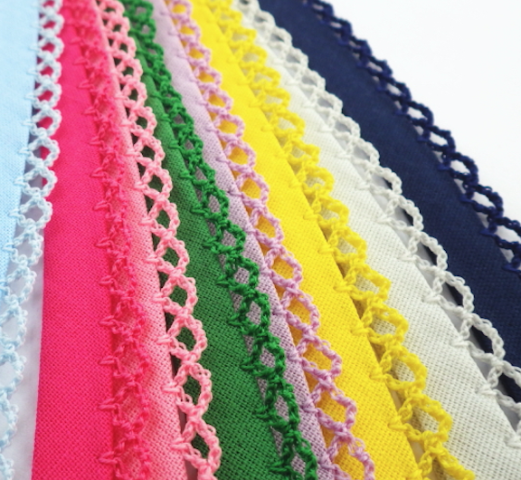 ピコットとは布の片側または両側の耳の線にそって並べた一連の小さいループでレースなどの布地の端を飾るのに使われる手法。編んで作る他、基布テープにピコットが付けられ、生地の端に縫い付けられるテープ状のものが多く使われている。