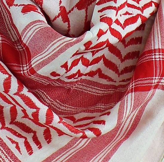 ヤシマゲとはアラプの国で男子がかぶっている、クーフィーヤと呼ばれる頭巾や肩掛け、スカーフに使われる布地のこと。暑い直射日光を防ぐために用いられるもの。1-1.5メートル平方の四角形の織物。