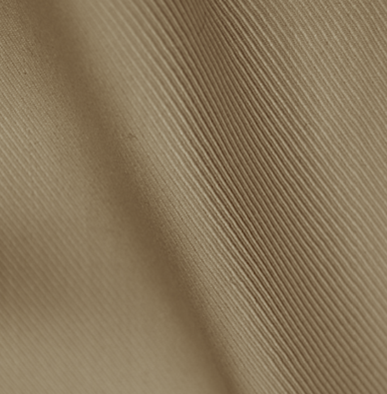 斜文の角度はかなり急で、一般に右上りである。毛織物によく用いられる織り方だが、綿で織り上げると、綿特有の柔かい感触や腰の強さが地合いによく生かされ、落ち着いた光沢もあるため、実用とファッションを兼ねたカジュアルウェアに向いている。